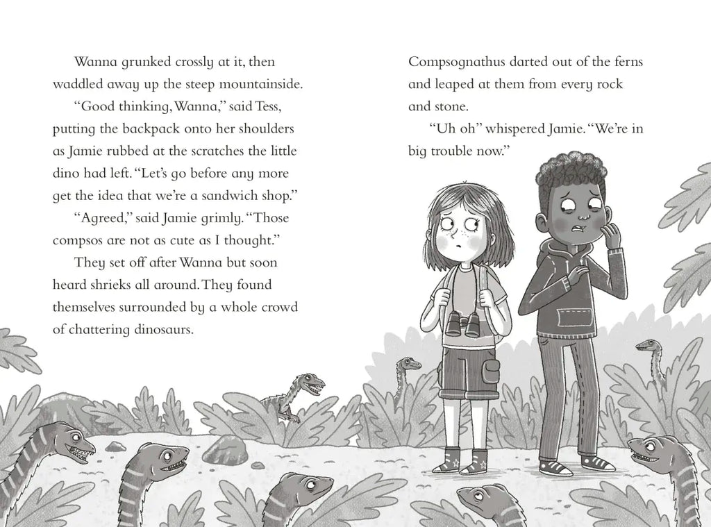 In this fun, action-packed adventure, Jamie learns not to judge a book by its cover when they meet a group of Compsognathus. Although they look cute, they turn out to be angry little predators. The chase is on! Little ones can learn about the prehistoric world with the Dinosaur Club collection of character-driven adventure stories for children aged 5-7 years old.