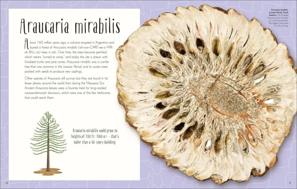Showcasing more than 90 remarkable fossils, such as a fearsome Tyrannosaurus skull, delicate fern leaf, and perfectly preserved woolly mammoth, each plant or animal featured is shown both photographically and illustrated, and children will love poring over the detailed close-up images.The storybook descriptions let you discover the myths and legends surrounding the organisms, as well as key facts about their natural history. Find out why Pachycephalosaurus had such a thick head, how a coral fossil can be used to work out how long a prehistoric year was, and which fossil was thought to protect people from poison. The engaging storybook-style descriptions and simple text shed a light on the diverse world of dinosaurs, perfect for children aged 6-8 to love and explore for hours on end.