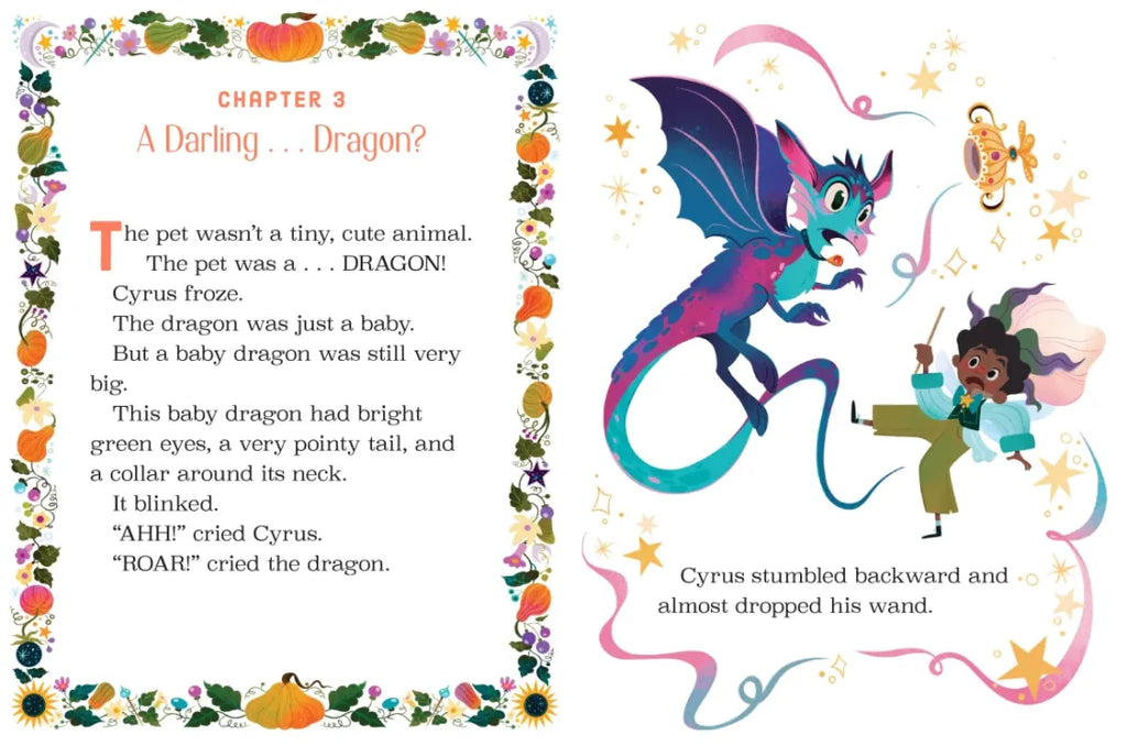 Cyrus Silverstar wants to be as brave as his friends, the other students at Bibbidi Bobbidi Academy. But during his assignment to grant a child's wish for a pet, he ends up spelling the most terrifying pet of all: a dragon! Now the dragon is loose on the school, and it is up to Cyrus to catch him. But Cyrus learns that you don't always have to feel brave to be brave, and sometimes the scariest situations can become the most magical adventures.