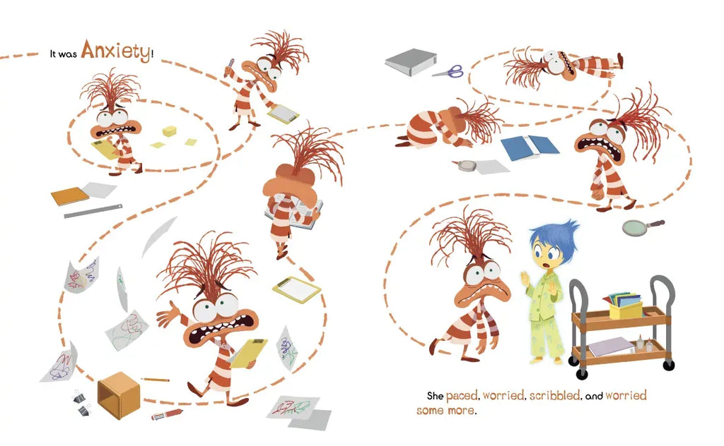 But there’s one Emotion who’s still wide awake: Anxiety! Anxiety paces, worries, and just can’t seem to quiet her thoughts. Soon her restlessness wakes up everyone in Headquarters. Can the Emotions help their anxious friend get a good night’s sleep?