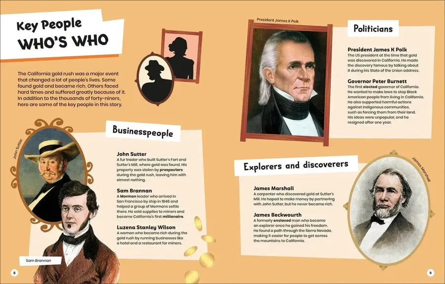 Captivating and curriculum-aligned, this book is the perfect support for learning about key historical moments. Embark on an educational journey and take a 360-degree look at the California Gold Rush, exploring the background and context, key people, the events themselves, and the influence they had on history.