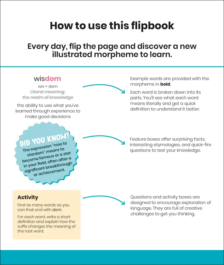 Delve into the fascinating world of morphemes, word formation, and discovery with this visual flip book designed for curious young readers.