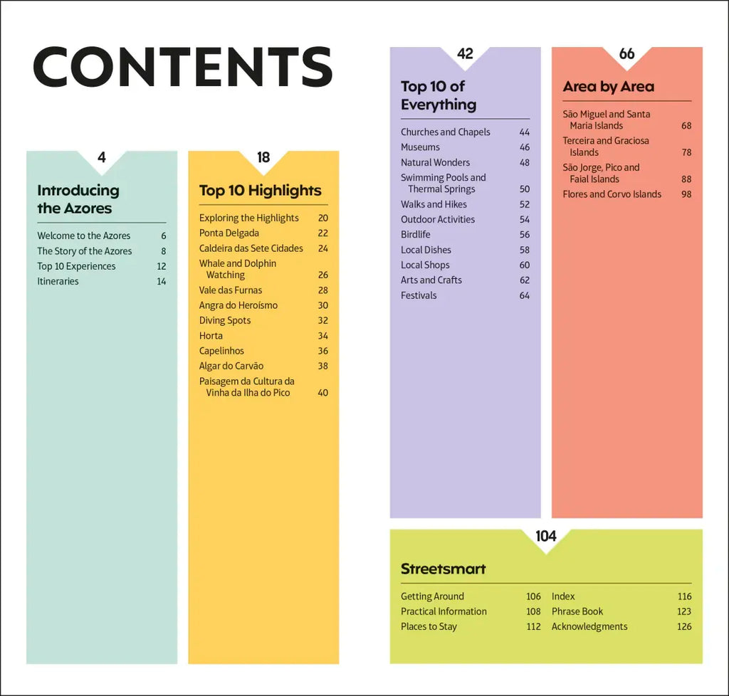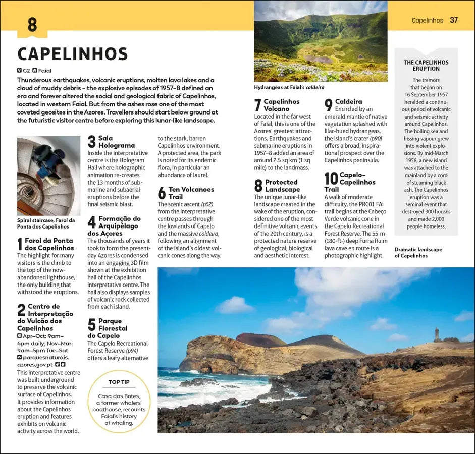 - Themed lists, including the best outdoor activities, traditional Azorean cuisine, natural wonders and much more