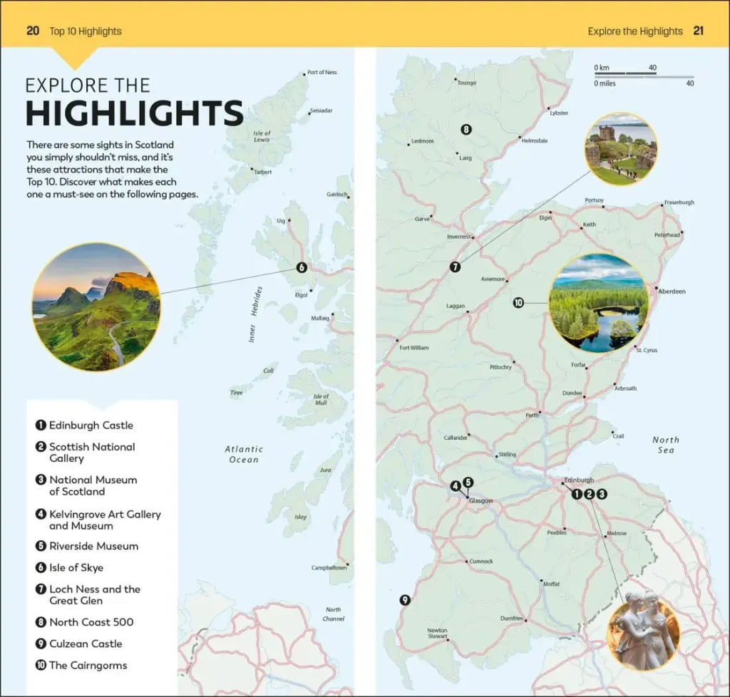 - Top 10 lists of Scotland's must-sees and must-dos, including visiting Edinburgh Castle, exploring the Isle of Skye and road-tripping along the North Coast 500