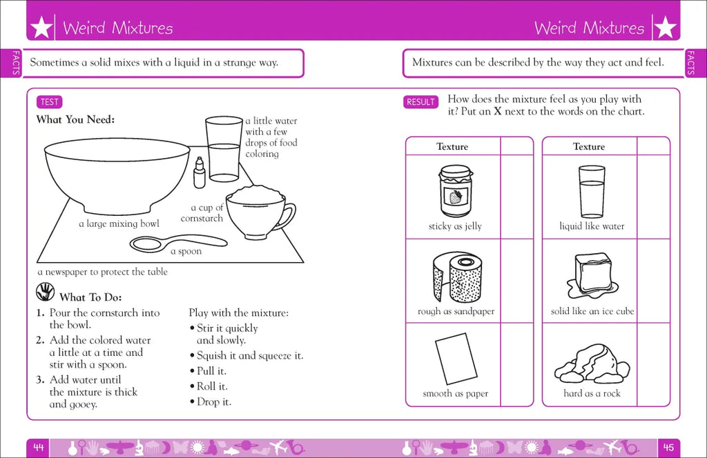 Introduce young ones to the intriguing world of science. Your child will discover the facts about making liquids and solids; seed growth and plant life cycles; our five basic senses and even how to make a boat!