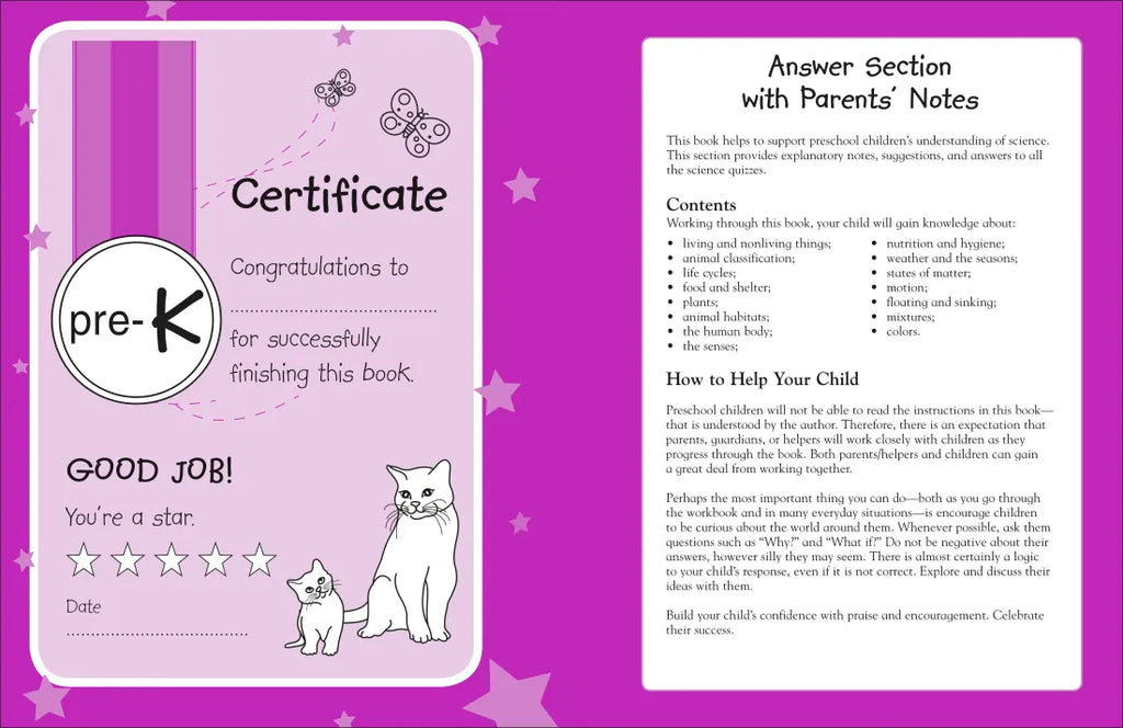Help your 3 to 5 year-old get a start on understanding the science around them with this simple and enjoyable workbook. It’s an excellent aid for homeschooling, or as a guide to teach some extra concepts.