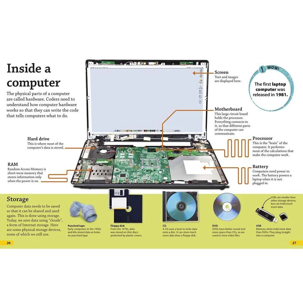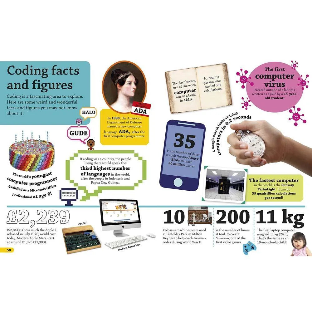 How much did the first laptop weigh? What exactly is a computer bug? How many calculations can the world’s fastest computer perform in a single second? Find out the answers to these questions and more in DKfindout! Coding, which features photographs and illustrations of gadgets, games, and coding geniuses like Ada Lovelace and Alan Turing. Beginning in the mid-1800s, readers can trace the path of coding pioneers from the birth of the first computer all the way to today’s tech boom. Along the way, they’ll learn about the fundamentals of coding languages like Java and Python—including their application in everything from cars to calculators—and how coding continues to revolutionize tech, gaming, medicine, space travel, and more.