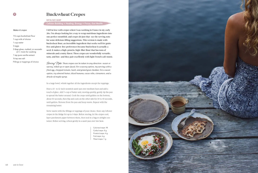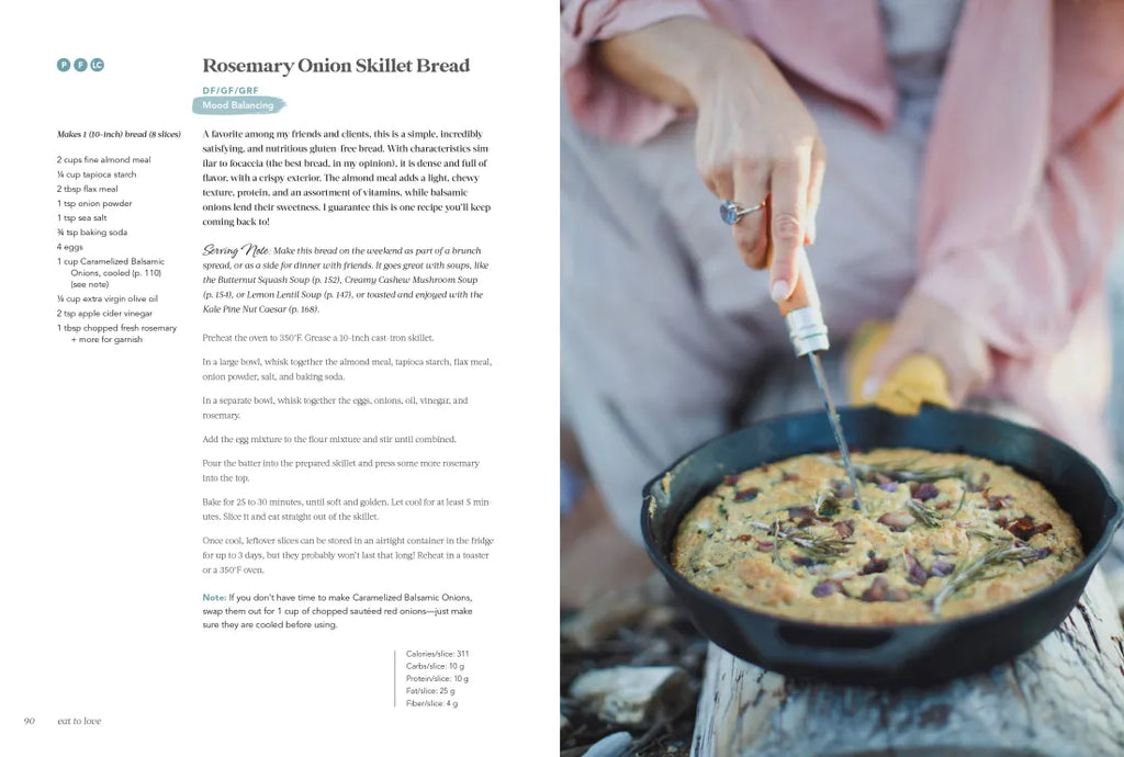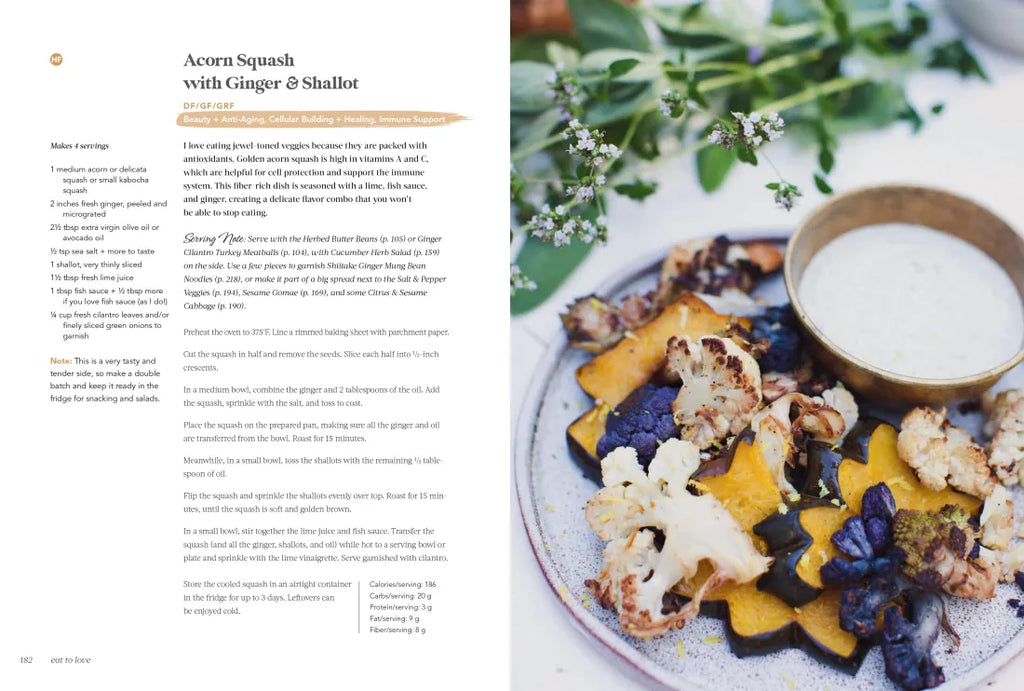 In Eat to Love, she shares, for the first time, the recipes and insider tips she’s learned. The playful and creative recipes in this book are adaptable to any diet, and each includes nutritional information to help you make intentional and informed decisions that will support your specific health goals.