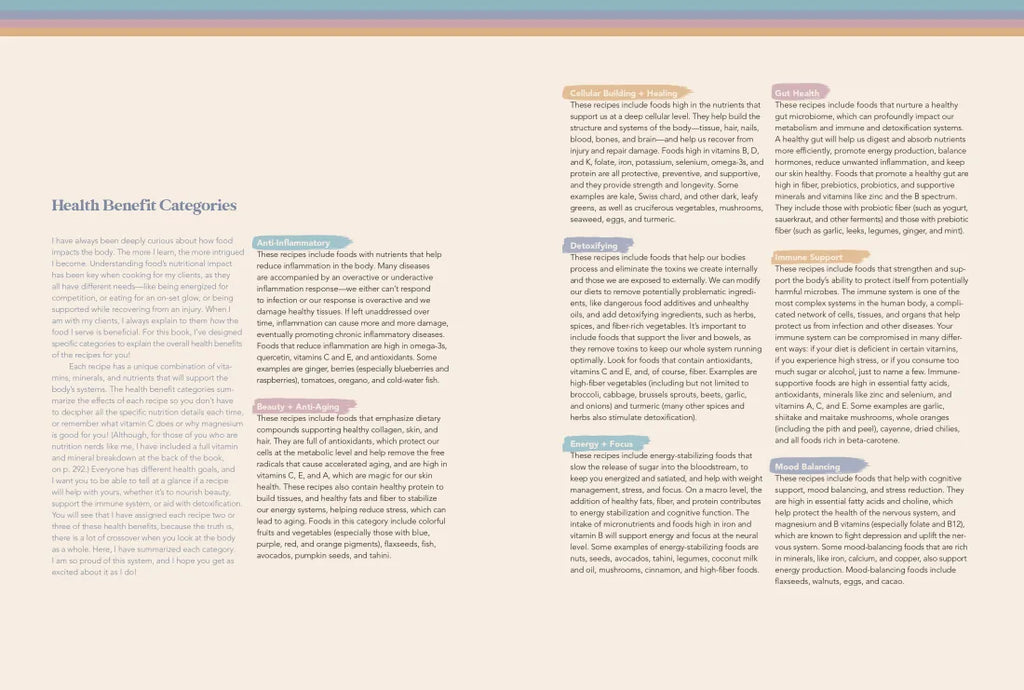 - Health benefits to match your unique needs: Nutritional icons on every recipe highlight those that are high in fiber or protein or low in carbohydrates, and a health benefit classification system shows those that are supportive of gut health, beauty and anti-aging, detoxification, and more.
