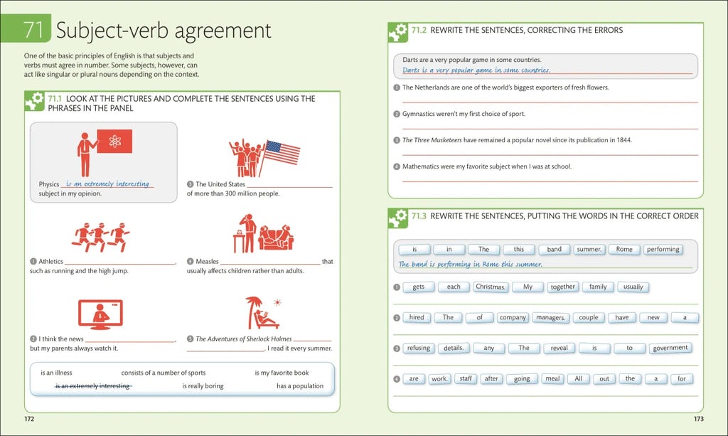 The Grammar Practice Book helps you to develop your practical English through a variety of exercises and examples that will expand your understanding of grammar and punctuation in use. When used alongside our Grammar Guide, which introduces essential grammar rules through visual teaching methods, this grammar book is ideal for English test preparations or ESL lesson plans.