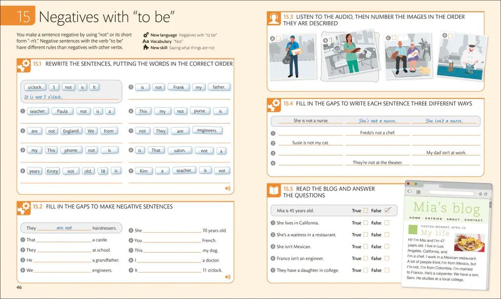 Start learning English as a second language with this visually stimulating practice book for adults.