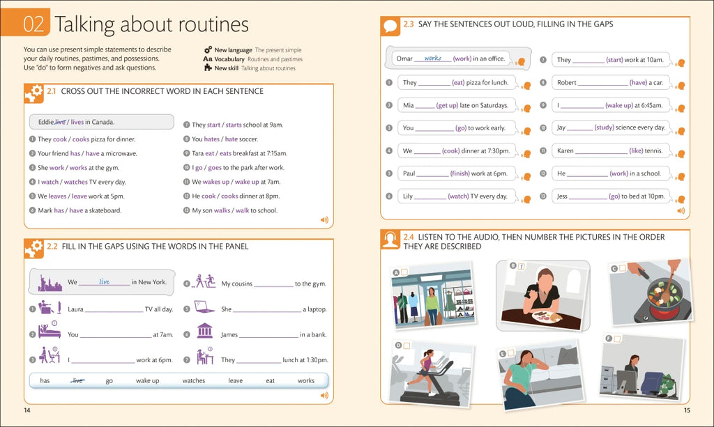 Start learning English as a second language with this visually stimulating practice book for adults.