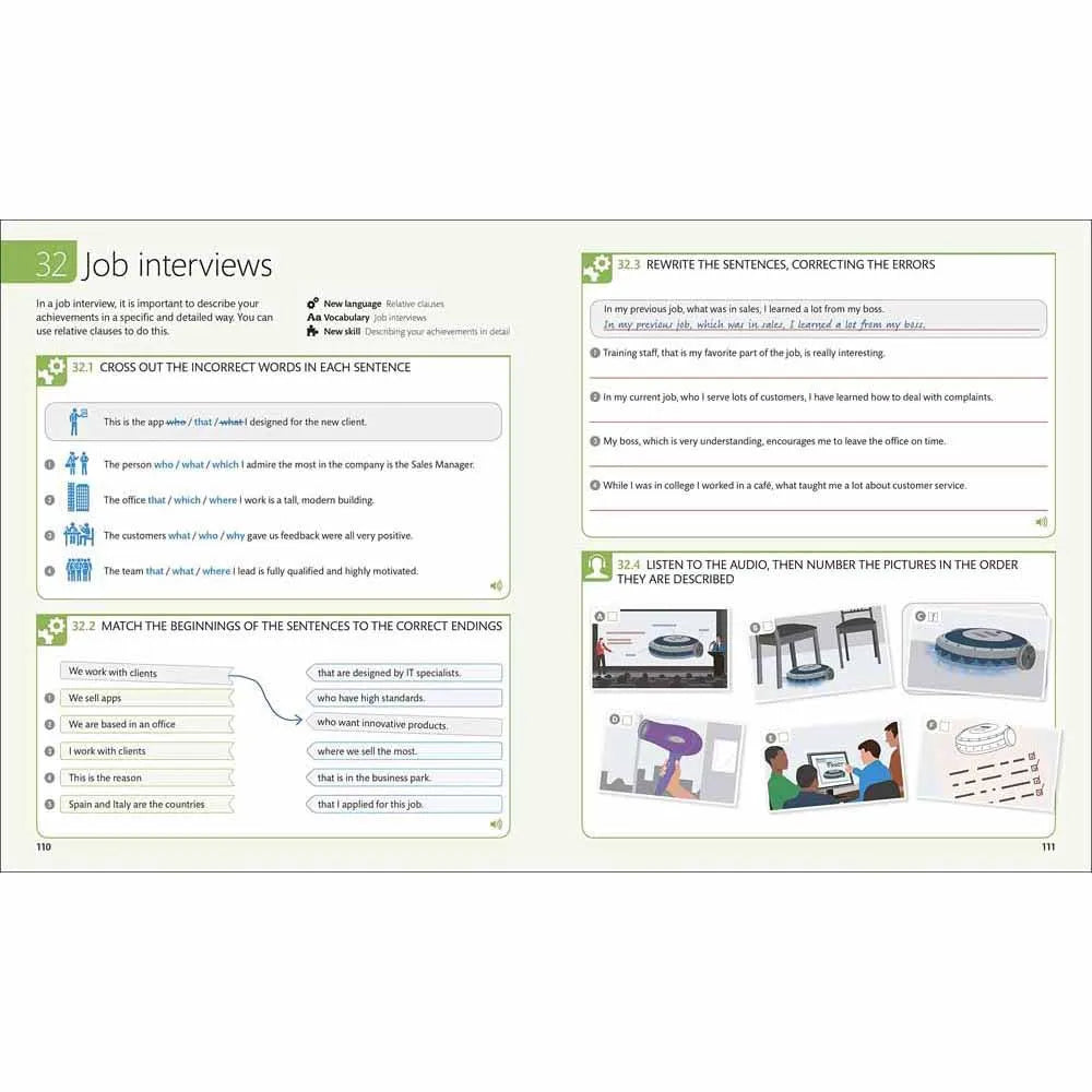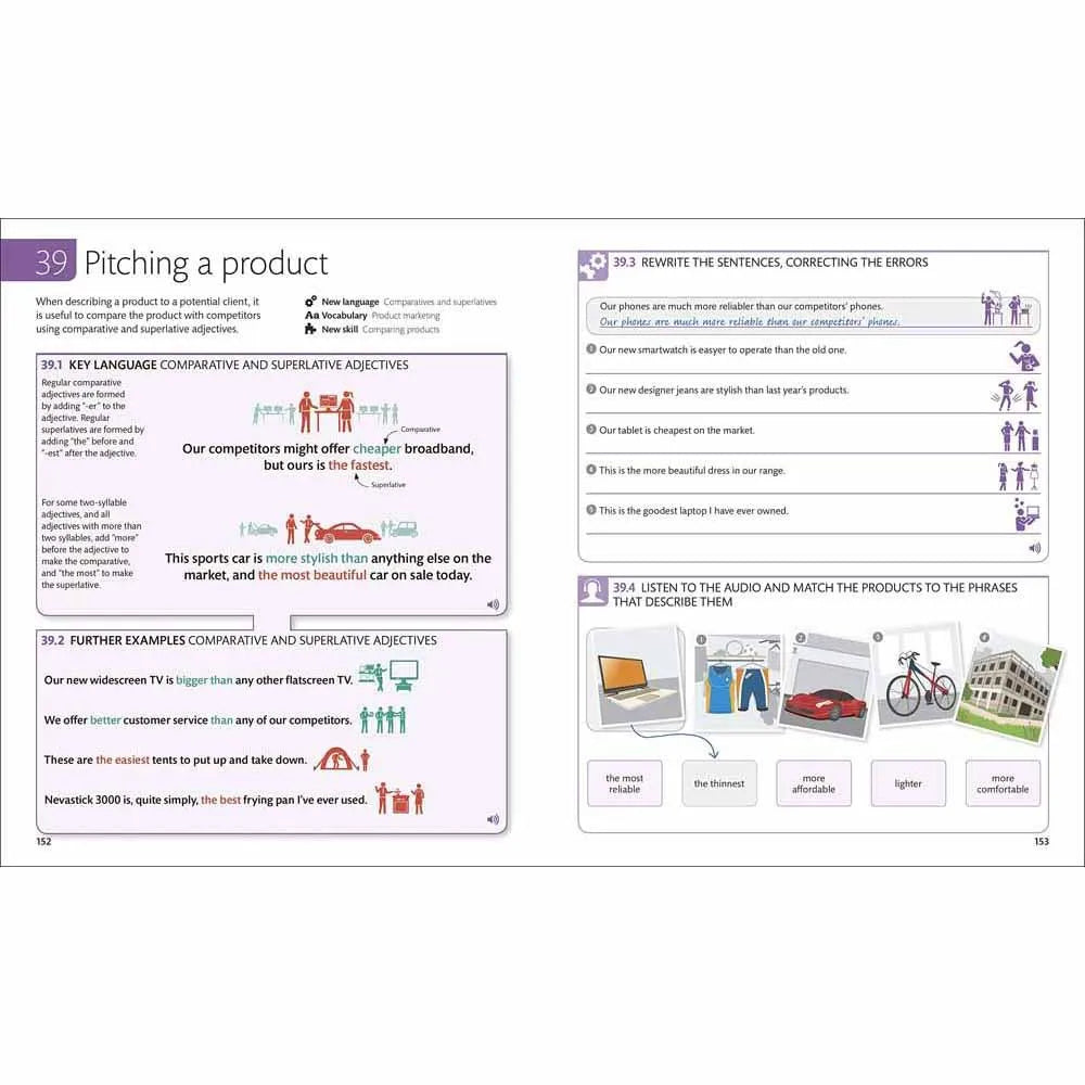 Key language skills, grammar rules, and business vocabulary are presented in a clear and simple way, with attractive illustrations to put business English in context. Listening, speaking, reading, and writing exercises, backed by extensive audio and interactive digital practice, are presented in bite-sized modules, allowing you to learn at your own pace. Whatever your career, the English for Everyone: Business English box set will make it incredibly easy to teach yourself English for the workplace.