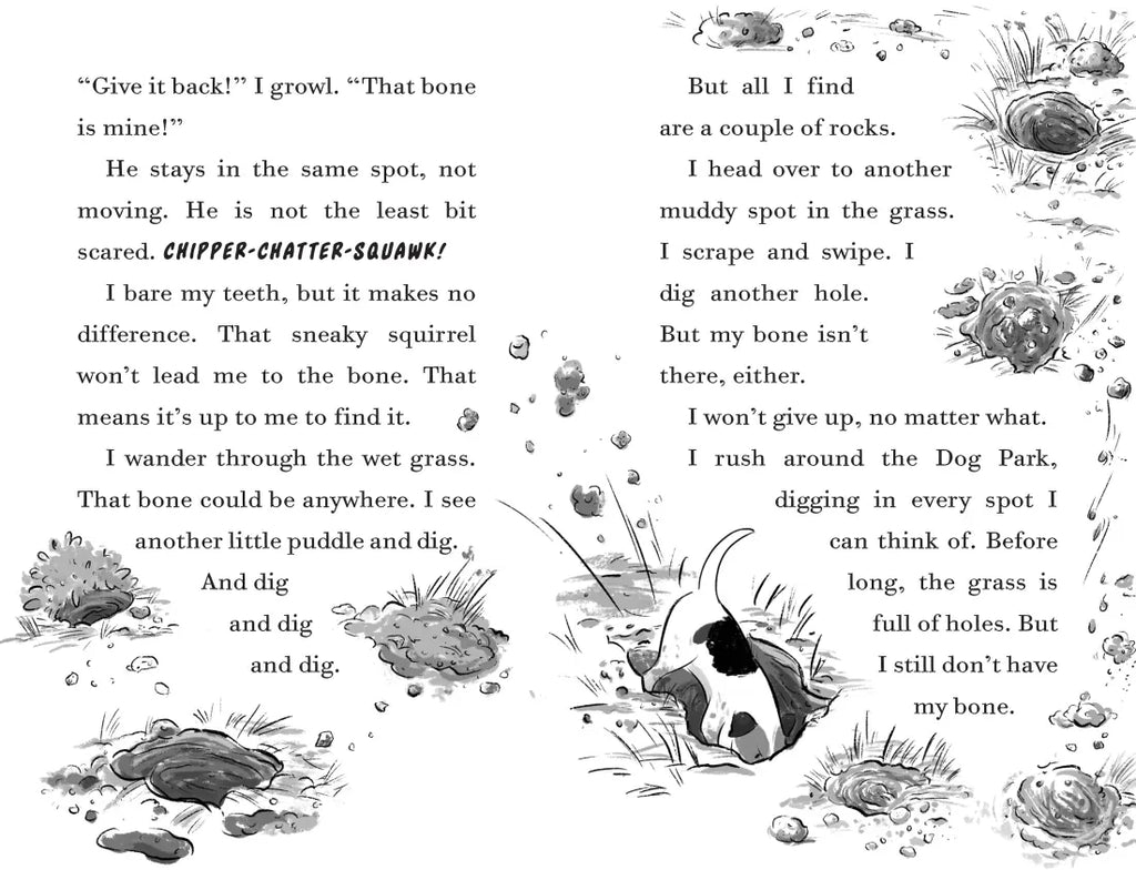 And nothing worse than sneaky squirrels trying to steal it! But Fenway is smarter than those squirrels, and he finds the perfect place to hide his bone.