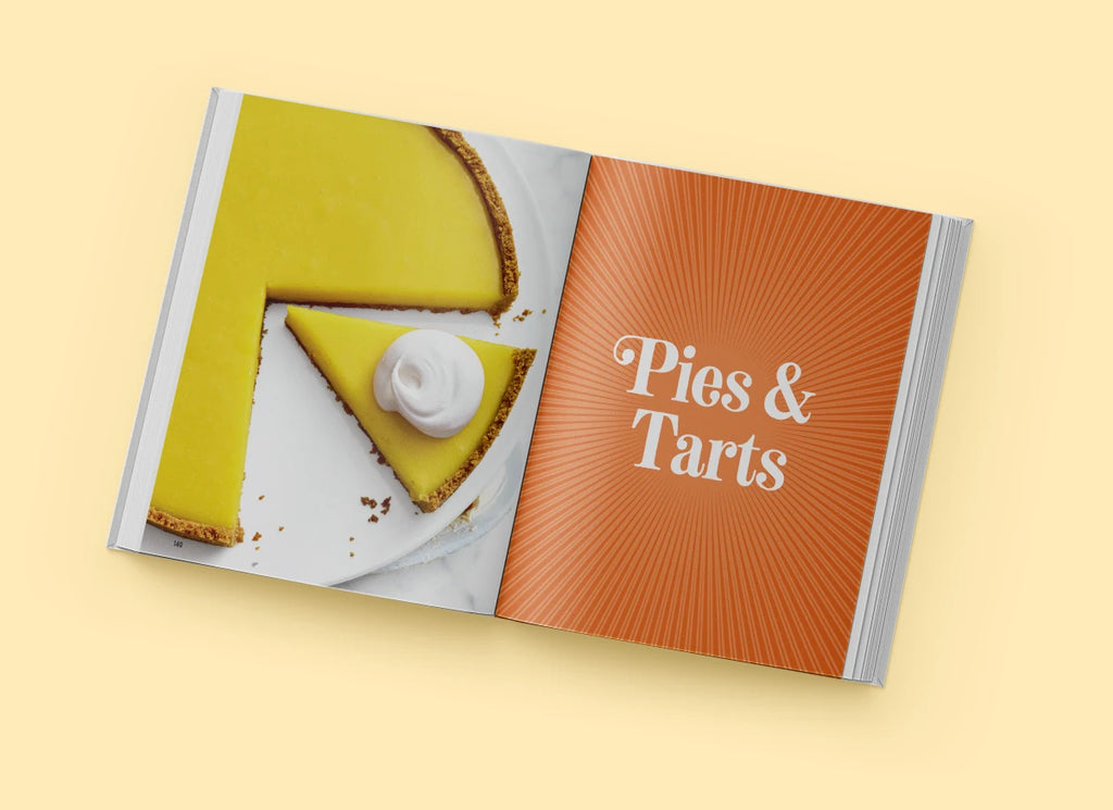 - Hidden spiral binding so the book lays flat on your counter or table when you’re baking