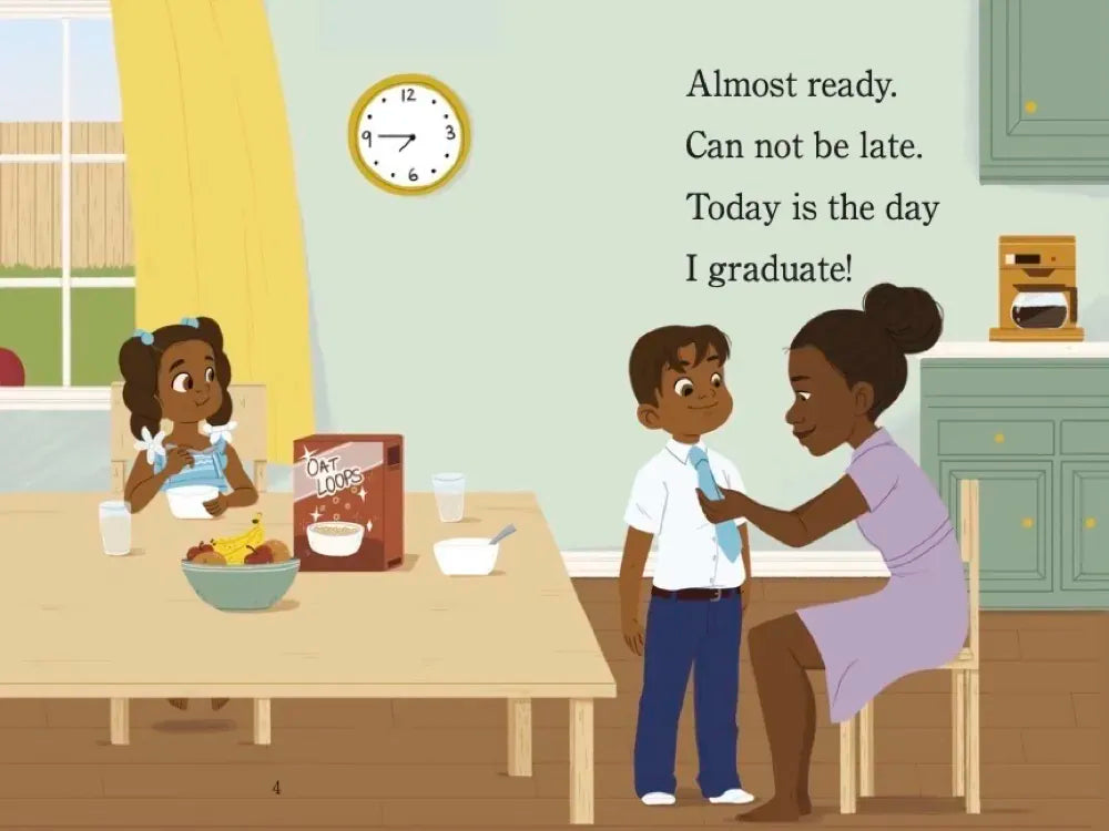 The school year is nearly over, and little bro is ready to graduate kindergarten! He and big sis head off for the very last day of school. He learned so much and can do so much on his own now. His cubby is cleaned out, he has his cap and gown, but—oh no!—his shoe is untied! No worries, he'll show everyone what he can do!
