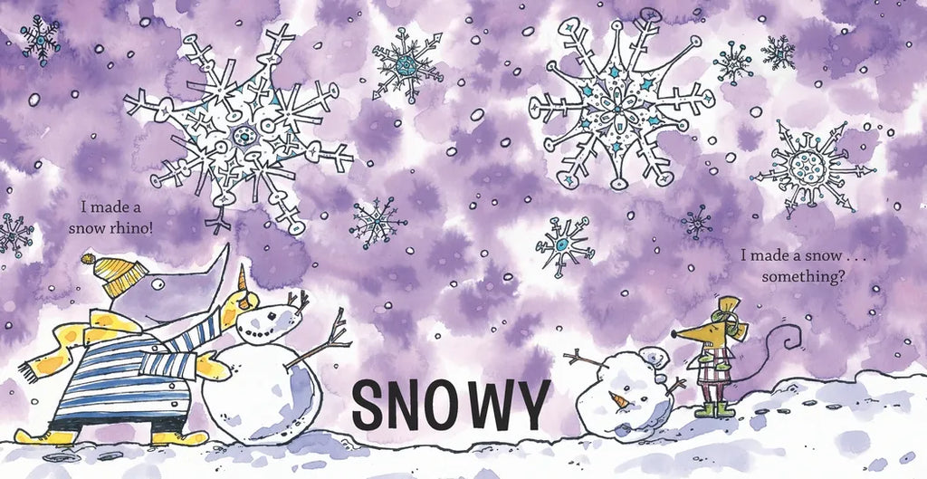 When Gus the rhino and Sully the mouse check out the weather each morning, they see and feel the same thing, but they experience it a different way. Bright sun is too hot for Gus and perfect for beach-loving Sully. Clouds inspire Gus’s imagination (“I see a bunny!”) but they just look like clouds to Sully. The wind is perfect for kite-flying for one, but threatens to blow someone small away. Whether rain or snow or sleet, Gus and Sully are on the spot, reporting back in their unique way. Wielding ink and watercolor, Steve Light ventures into an appealing new art style with a simple, funny board book ideal for children just beginning to explore the wide world around them.
