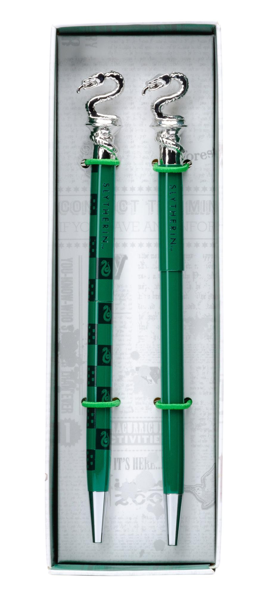 INCLUDES PEN AND MECHANICAL PENCIL: One of each essential writing instrument that looks good in your home office or adds flare to your school supplies. SLYTHERIN™ DESIGN: This classically inspired design features SLYTHERIN™ house colors and is adorned with a die-cast metal figurine of the snake house mascot. BOXED FOR GIFTING: The perfect gift for HARRY POTTER™ fans, bibliophiles, book clubbers, writers, and teachers. Use with your favorite SLYTHERIN™ stationery from INSIGHTS or as a gift for your most ambitious loved ones. PERFECT FOR STUDENTS AND ADULTS: Whether you are new to the magic of the Wizarding World™ or a seasoned fan, this pen and pencil set is perfect for any proud SLYTHERIN™ enthusiast. COMPLETE YOUR COLLECTION: Collect more SLYTHERIN™ stationery products inspired by the Wizarding World™ including Slytherin Notebook and Page Clip Set, Slytherin Enamel Charm Bookmark, Slytherin Memo Cube, and Slytherin Glass Magnet Set all from INSIGHTS.