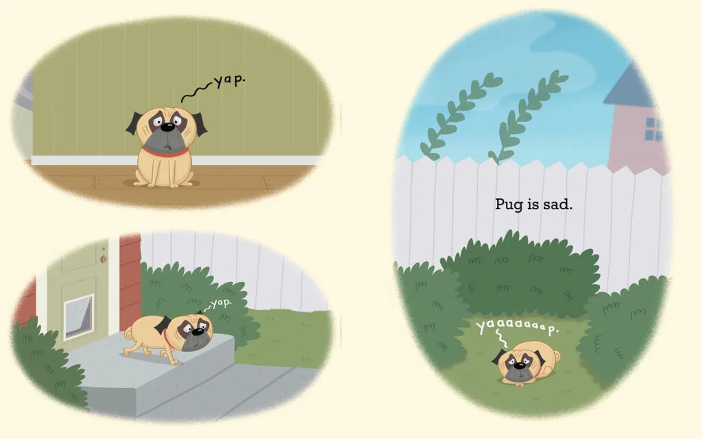 Yap! Yap! Yap! Welcome to Pug’s world—where simple text meets adorable artwork, and young readers meet their new best friend.