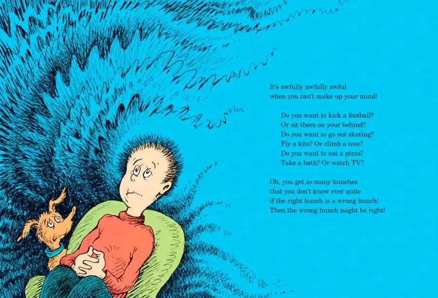 Dr. Seuss adds his signature spin to the age-old dilemma of indecisiveness in his rhyming picture-book classic Hunches in Bunches. Whether readers have a “four-way hunch,” a “nowhere hunch,” or an “up hunch,” Dr. Seuss and his unmistakable one-of-a-kind advice will ensure that they won’t get “ga-fluppted" when choosing what to do!