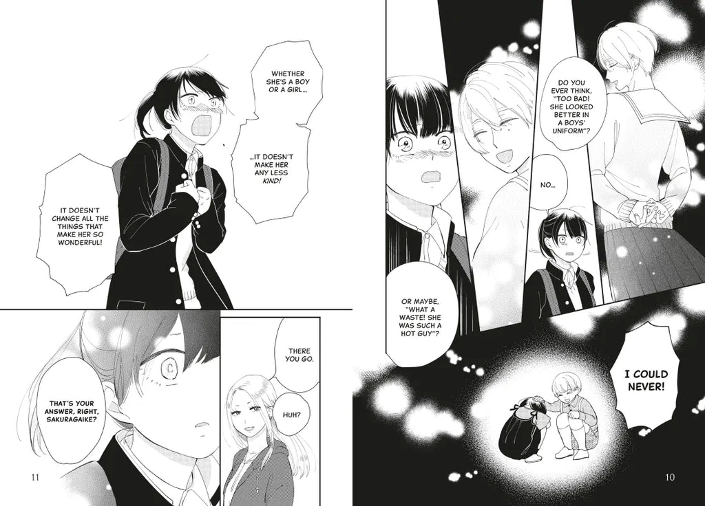 Hime thinks she’s doing the right thing by sticking up for Akira, but from her friend’s point of view, it’s only making things worse. Akira doesn’t want to stand out because of her transition. Her only wish is to enjoy school, to make memories like everyone else. But Hime’s constant need to speak out on Akira’s behalf is putting these two best friends at odds.