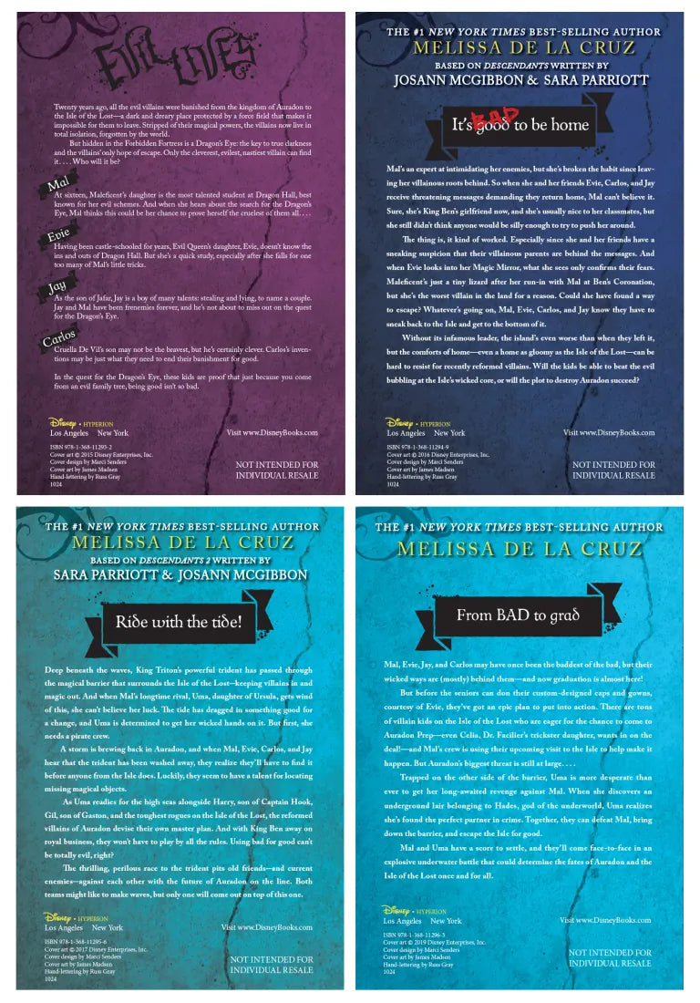When Mal, Evie, Carlos, and Jay all receive threatening messages demanding they return to the Isle of the Lost, they're determined to figure out who sent them. And to do that, they'll have to go back. Without its infamous leader, the island's even worse than when they left it, but the comforts of home-even a home as gloomy as the Isle of the Lost-can be hard to resist for recently reformed villains. Will the kids be able to beat the evil bubbling at the Isle's wicked core, or will the plot to destroy Auradon succeed?