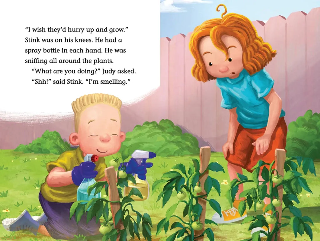 Judy can’t wait for her mischief to bear fruit when Stink discovers that his backyard science project is an overnight success. Hardy-har-har!