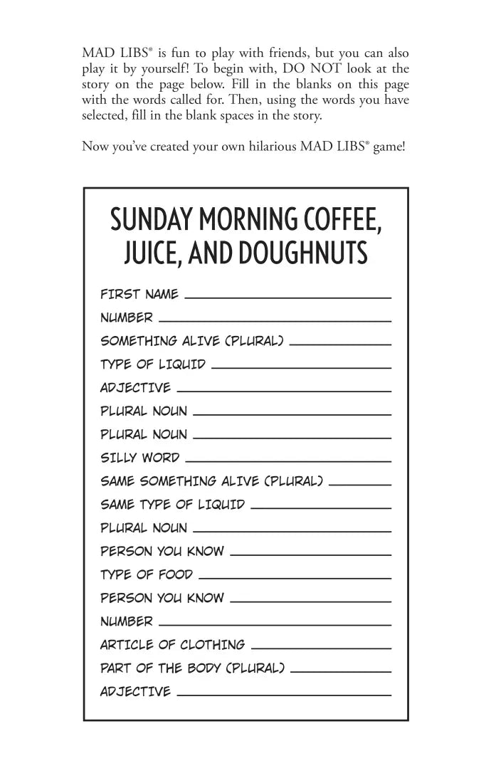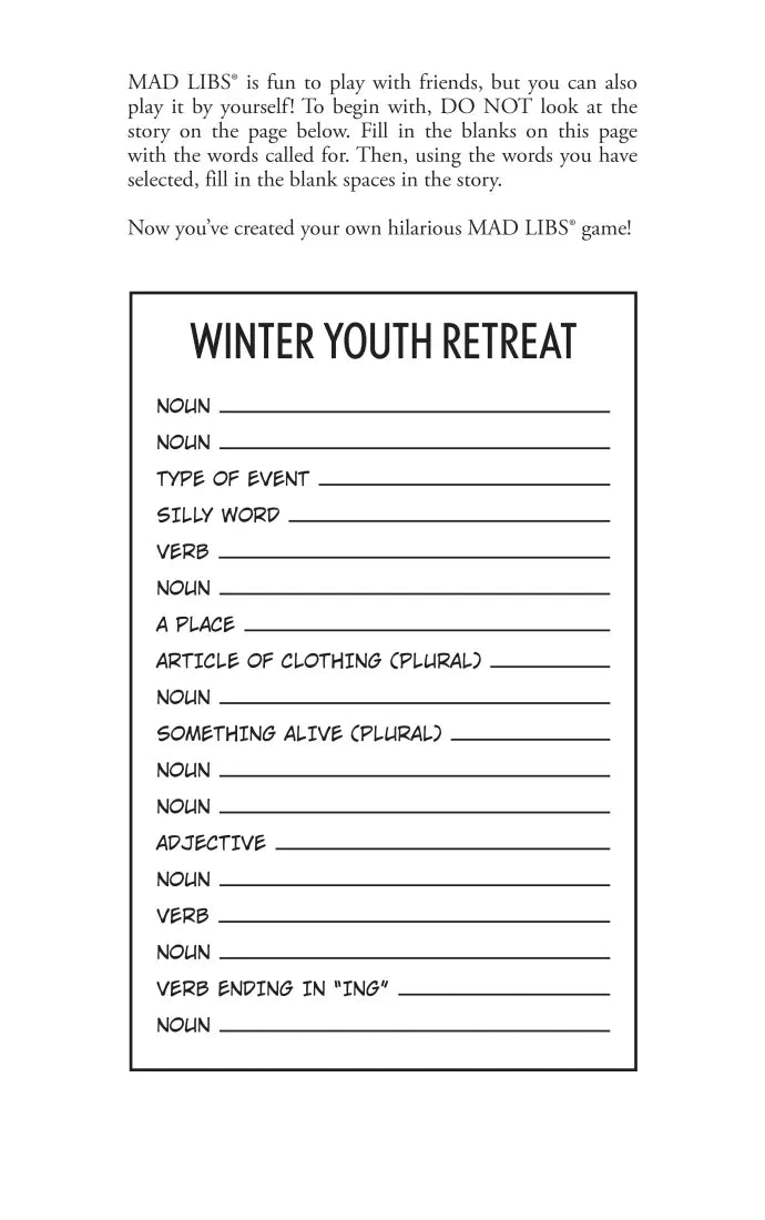 Mad Libs is the world’s greatest word game and the perfect gift or activity for anyone who likes to laugh! Write in the missing words on each page to create your own hilariously funny stories all about Christianity!