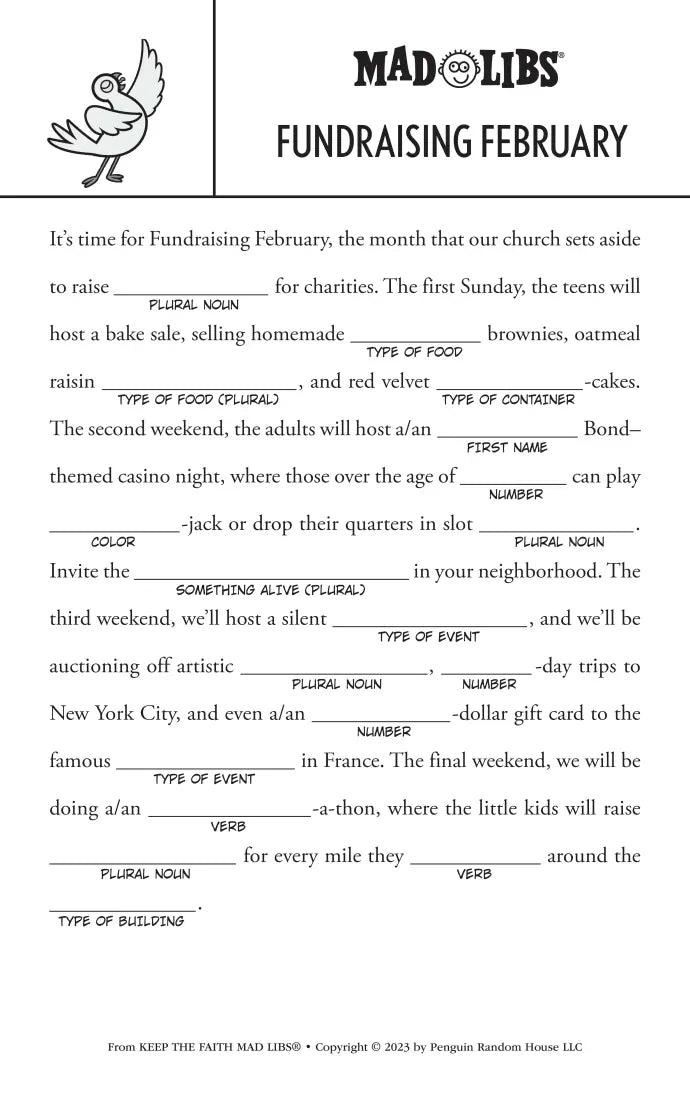 Keep the Faith Mad Libs includes: