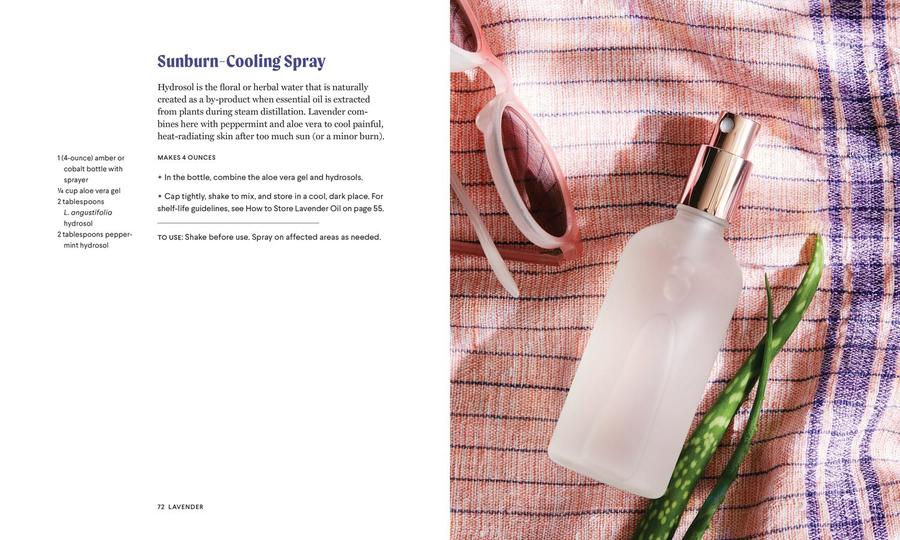 The book covers gardening (favorite varieties and pollinators); preserving (harvesting, drying, and extracting culinary oil); body care (essential oils, aromatherapy, oral remedies); the mind (stress relief and sleep); skin care (including allergens); cleaning (antiseptic and antifungal properties); food (pantry essentials); and projects (including gifts).