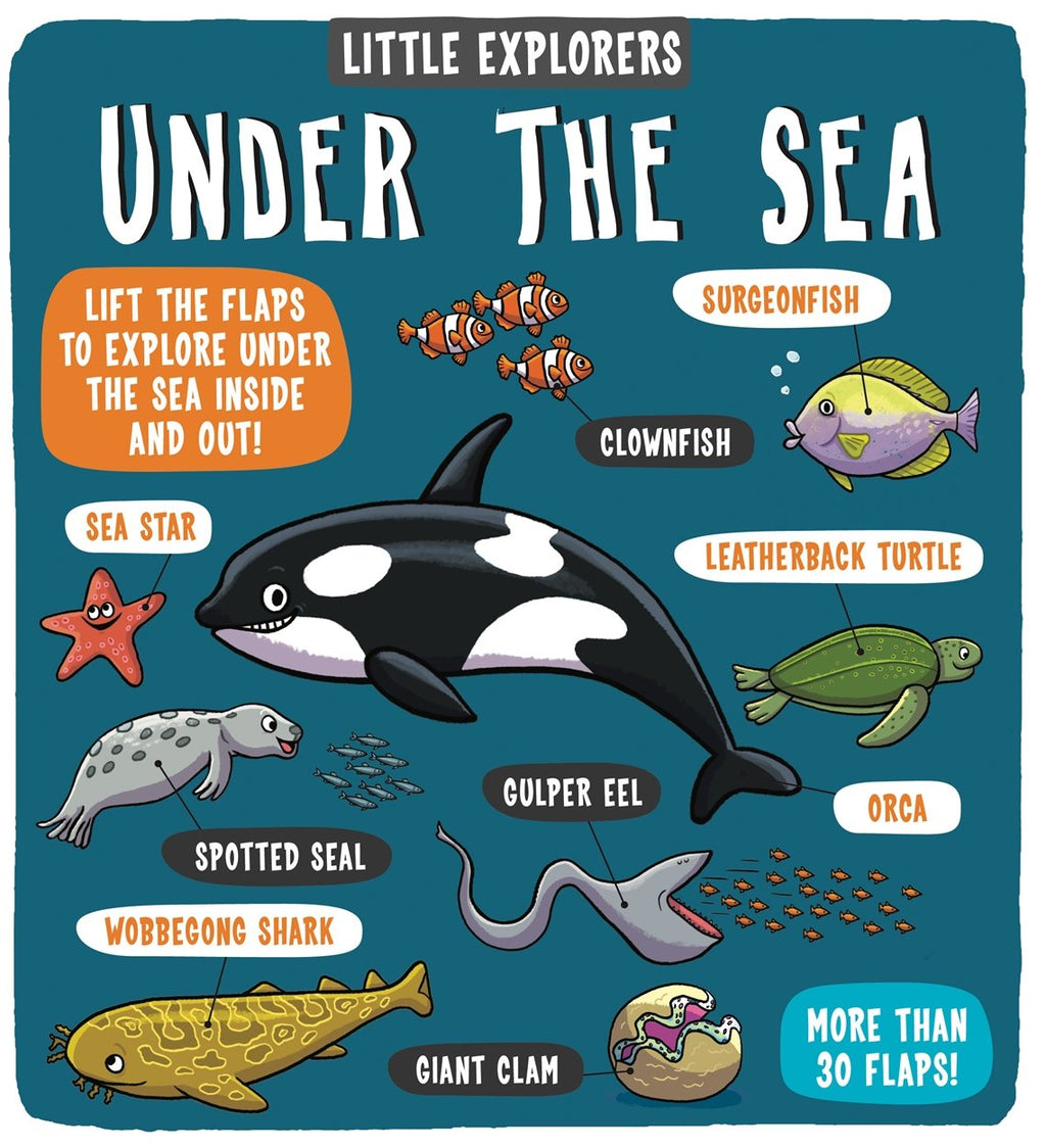 UNDER THE SEA is a lively introduction to life beneath the waves, where children can lift the flaps to learn about an under water world. Young readers will be amazed as they find out what beautiful creatures can be discovered amongst a coral reef or shipwreck, why fish look so different deep down, which ways predators hunt their food, and much, much more. This book features over 30 sturdy flaps to lift, along with charming, child-friendly artwork that introduces new concepts and vocabulary in a simple and accessible way.