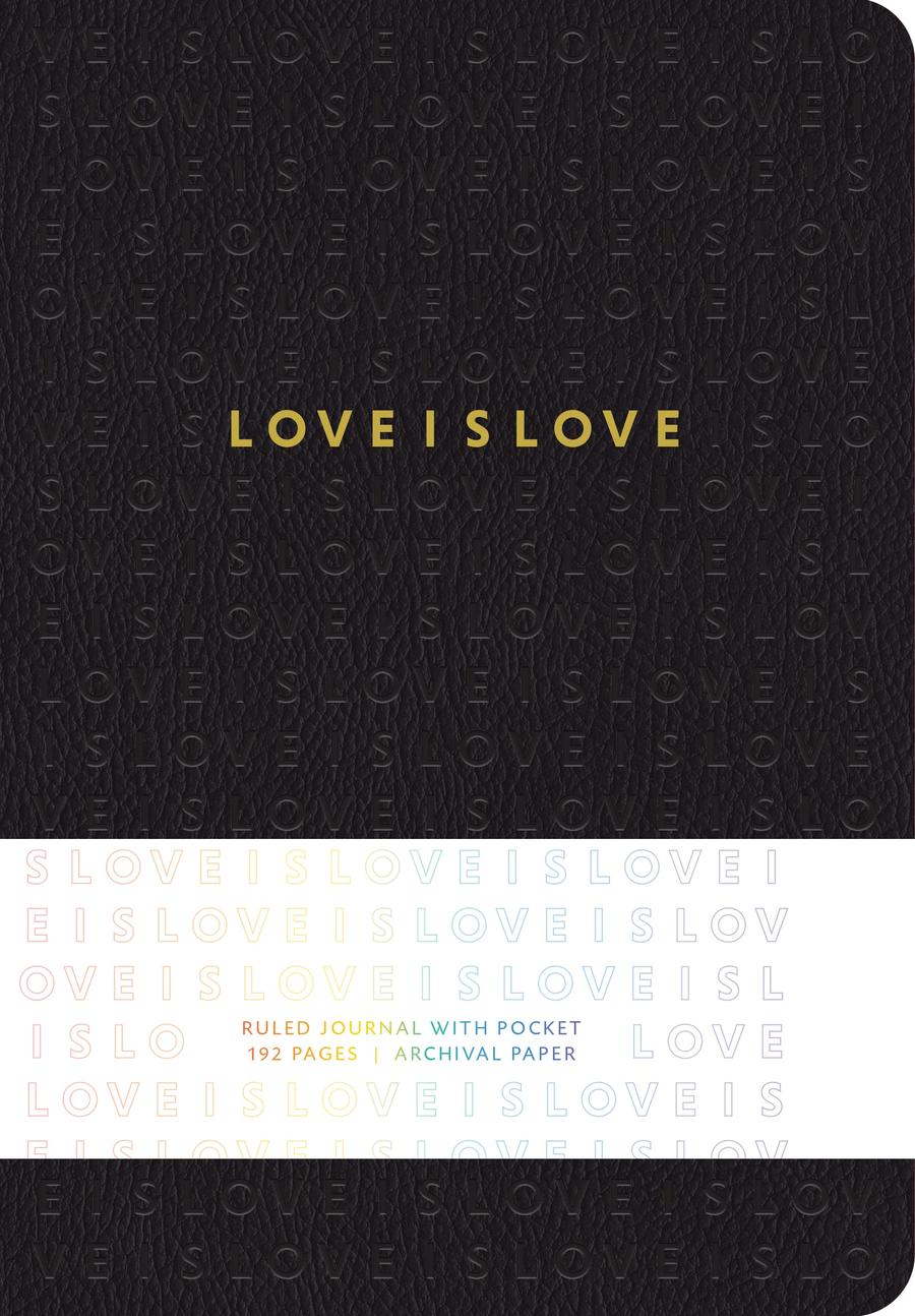 Show your pride with this deluxe journal celebrating the LGBTQ+ community and love in all its forms. Featuring a beautiful “Love is Love”-themed design, this hardcover journal lies flat when open and includes 192 ruled pages, a ribbon placeholder, an elastic band, and a back pocket for storing keepsakes and mementos.