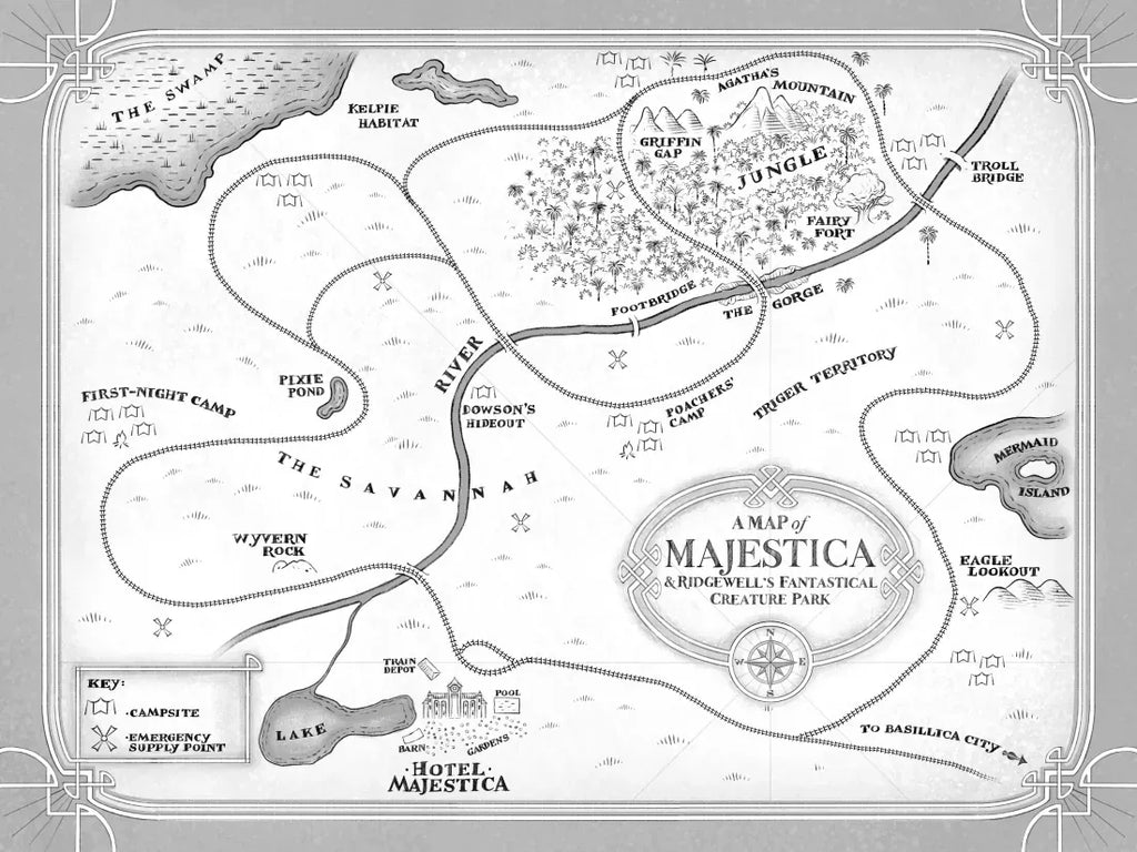 Features a richly illustrated map of the expansive nature preserve, as well as a bestiary with all the magical—and dangerous—creatures at Majestica.