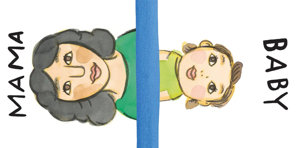 Mama and Baby clap and play hide-and-seek and pat-a-cake. Mama and Baby . . . Mama? Where did Mama go? In a series of spreads, simple, bold illustrations show a mother on one side and a baby on the other, interacting in universally familiar ways — until Mama dips out briefly, then returns to her crying child to offer comfort again. With his usual flair, the redoubtable Chris Raschka offers a reassuring moment that will resonate with mamas and babies everywhere.