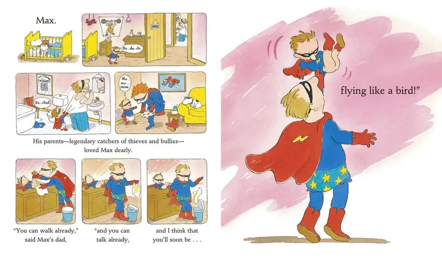 As the son of legendary superheroes Captain Lightning and Madam Thunderbolt, Max is destined to join their ranks - once he learns to fly, that is. But despite his parents’ valiant coaching and encouragement from his grandparents and friends, Max can’t seem to get off the ground. Will he ever learn to leap over tall buildings in a single bound? With quintessential quirkiness, award-winning author Bob Graham has created a mighty tale about the ups and downs of mastering your potential - all in your own good time.