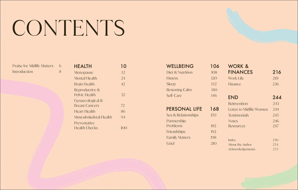 MIDLIFE MATTERS promises to be an all-encompassing guide and manual for midlife women, exploring the five key areas of HEALTH, WELLBEING, RELATIONSHIPS, WORK LIFE, CHALLENGES & OPPORTUNITIES with humour and honesty. Guiding us through, author Katie Taylor's friendly narrative is supported by expert contributions in each chapter, including advice and resources from a world-renowned medical advisory team - and of course the testimonies of real women from the midlife community.