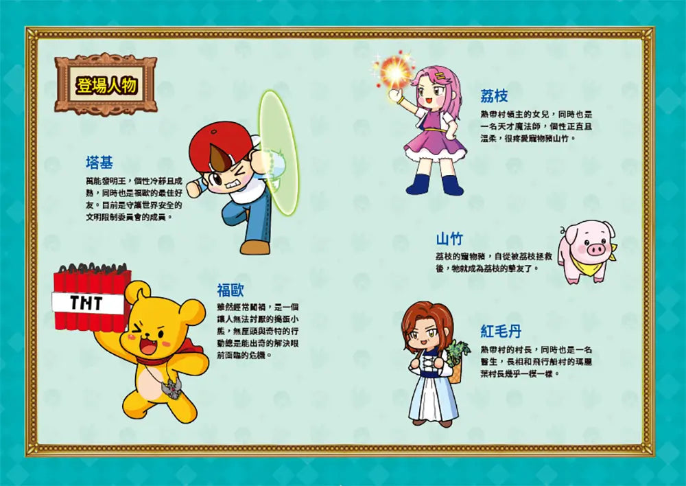 為了讓塔基與福歐的冒險一直都保持健康和愉悅的風格,我負責塔基與福歐冒險故事的著色與腳本。