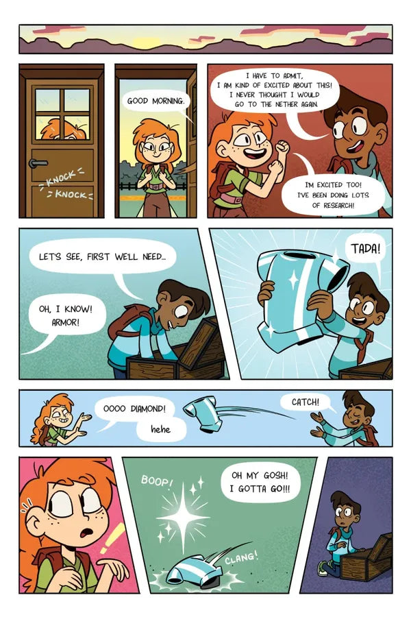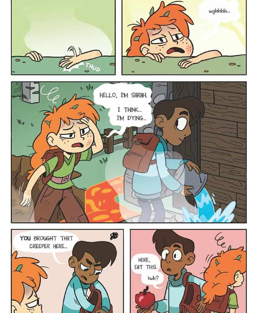 Hector isn’t used to exploring the Minecraft world with anyone other than his parents, so he’s reluctant at first. However, Sarah’s enthusiasm and all-around energy bring Hector around, and the two become partners—but more importantly, friends!