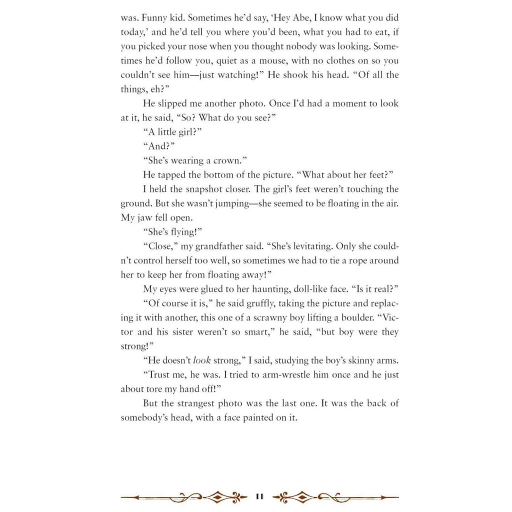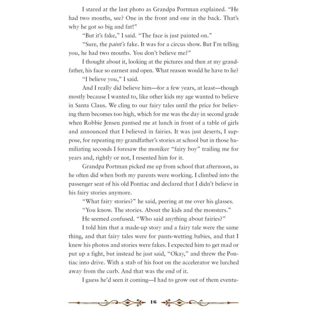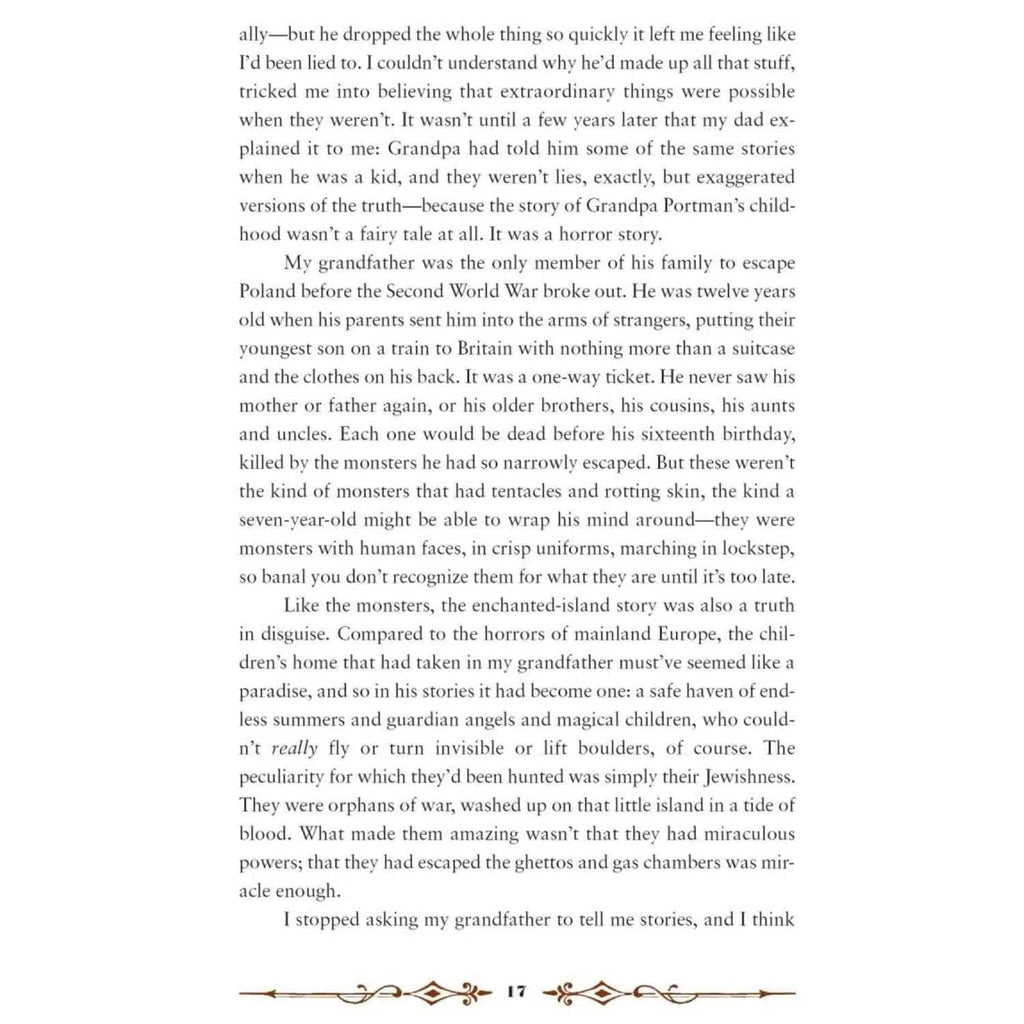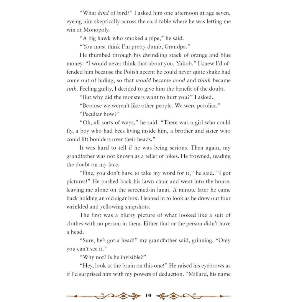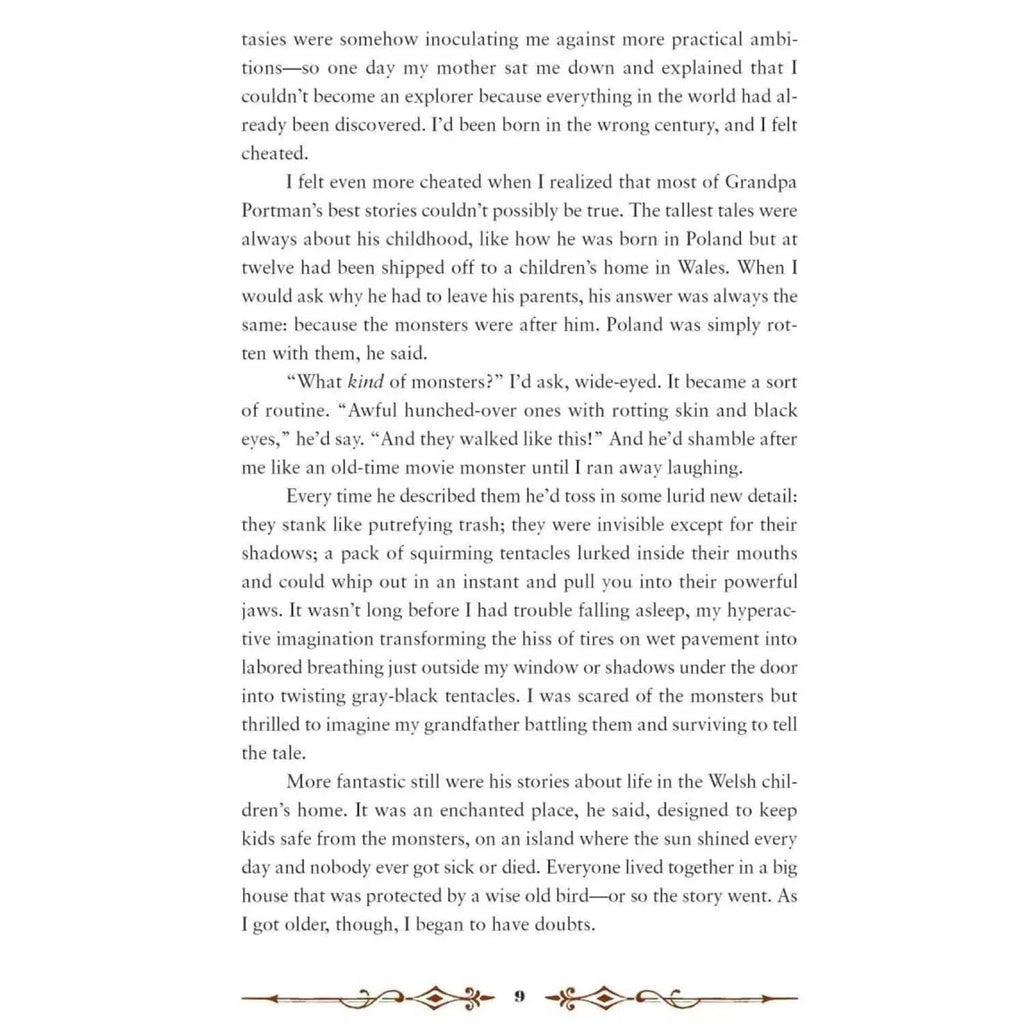 MISS PEREGRINE'S HOME FOR PECULIAR CHILDREN: A mysterious island. An abandoned orphanage. A strange collection of very curious photographs. It all waits to be discovered in this groundbreaking novel, which mixes fiction and photography in a thrilling new kind of reading experience. As our story opens, a horrific family tragedy sets sixteen-year-old Jacob Portman journeying to a remote island off the coast of Wales, where he discovers the crumbling ruins of Miss Peregrine’s Home for Peculiar Children.