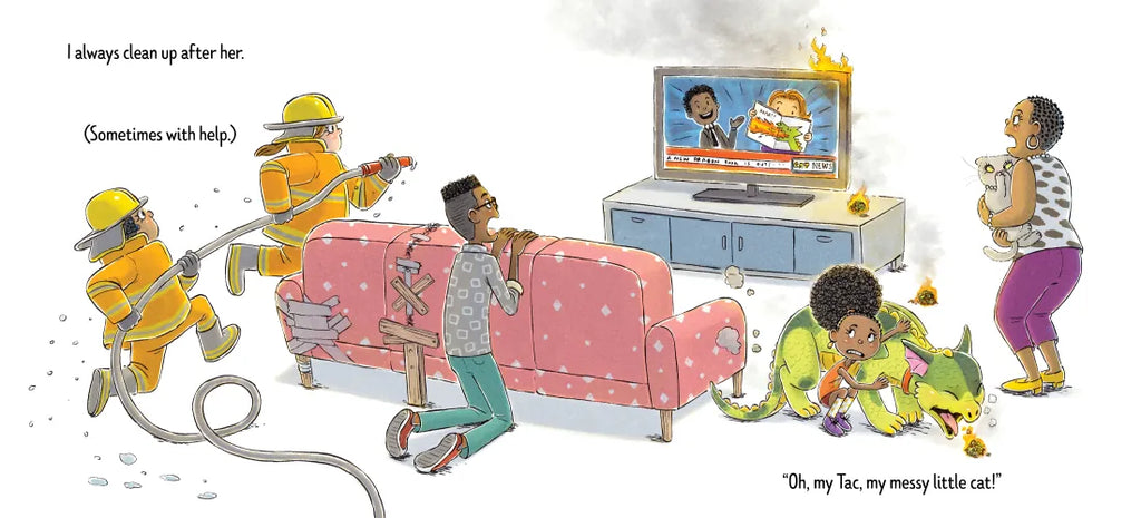 Meet Tac, an unusual cat! Her pounce shakes the house, her zoomies are a doozy, and her hairballs are . . . well, fireballs. But she’ll always be family. Right?