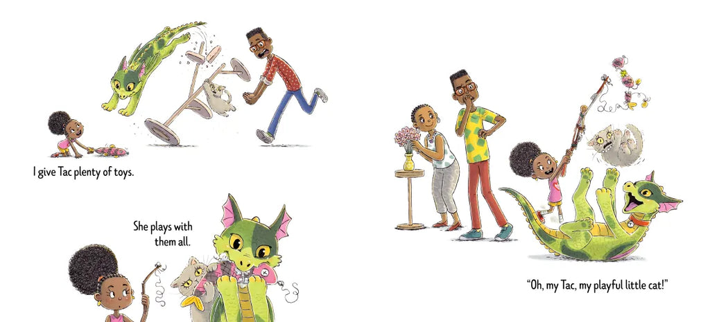 With spare, sweet text and humorous illustrations that tell another, more dragon-y side of the story, No Cat Like Tac sends the funny but heartfelt message that family is about being yourselves, but choosing each other.