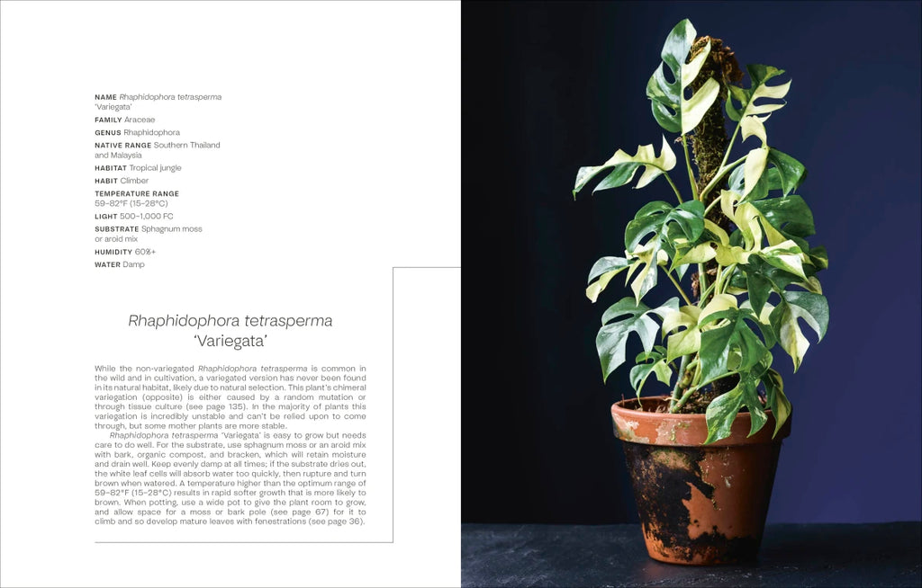 Detailed chapters on light, water, humidity, fertilizer, variegation, propagation, and pests and diseases have you covered so you can confidently care for all your houseplants. Understanding their natural habitats empowers you to create the optimum environment in your own home so your plants will thrive. Combining detailed care advice and stunning imagery on a wide range of plants, including Monstera and Anthurium, with a special focus on desirable and unusual varieties