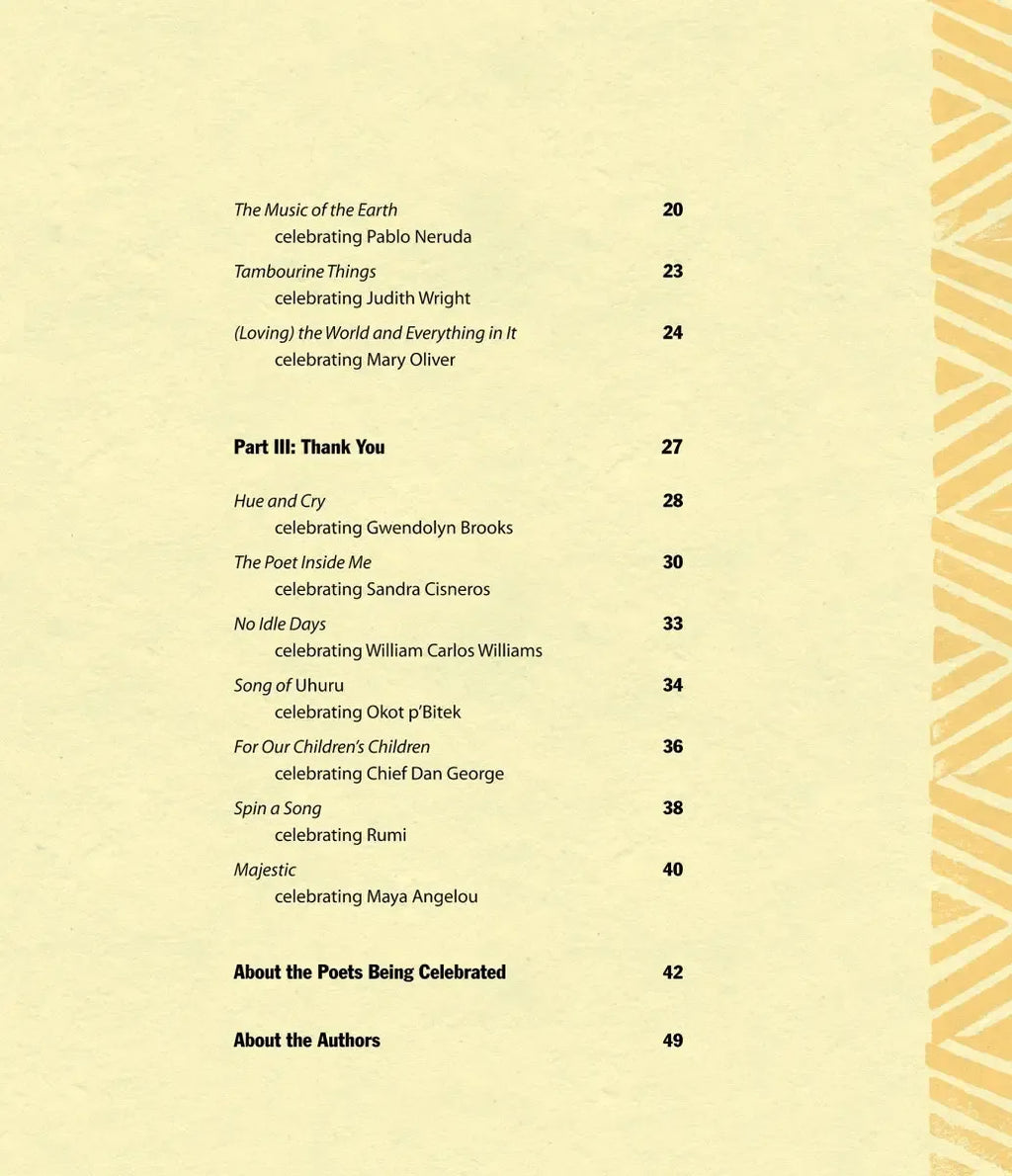 Out of gratitude for the poet’s art form, Newbery Award–winning author and poet Kwame Alexander, along with Chris Colderley and Marjory Wentworth, present original poems that pay homage to twenty famed poets who have made the authors’ hearts sing and their minds wonder. Stunning mixed-media images by Ekua Holmes, winner of a Caldecott Honor and a John Steptoe New Talent Illustrator Award, complete the celebration and invite the reader to listen, wonder, and perhaps even pick up a pen.