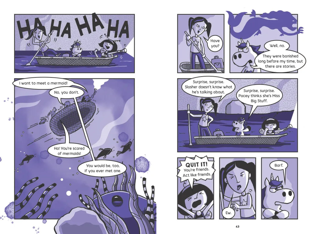 Meet the world's grumpiest unicorn. Pacey and Slasher are swimming with MERMAIDS in this middle-grade graphic novel series that's perfect for anyone who loves (or hates!) unicorns!