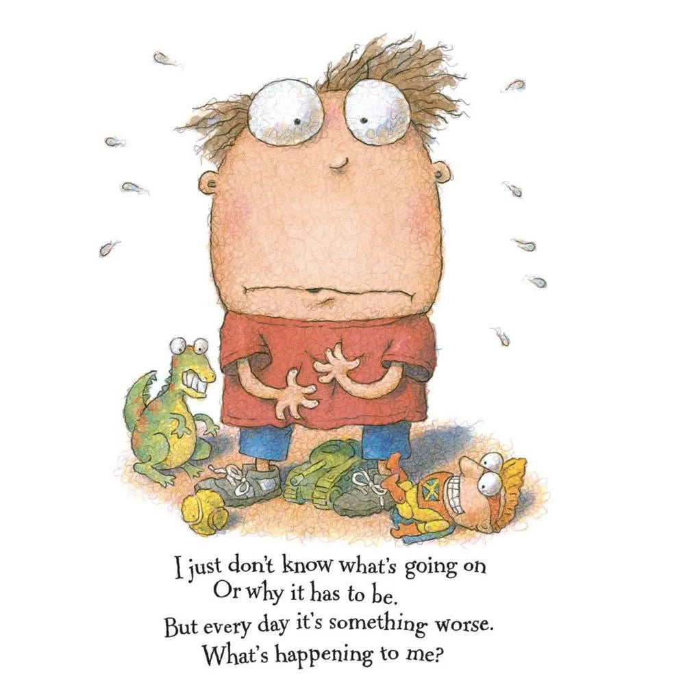 I just don't know what's going on Or why it has to be. But every day it's something worse. What's happening to me? So begins this uproarious new story from the best-selling creator of No Jumping on the Bed!,Green Wilma, and other popular books. The young narrator has discovered a disturbing trend: There's fuzz in his belly button his toes are peeling and something just fell out of his nose. The last straw is a loose tooth, which convinces him of the awful truth his parts are coming unglued!Parts deals with a subject of deepest interest to every young child: the stuff our bodies shed. Parents will appreciate the reassuring message that it's all quite normal, while Tedd Arnold's comical illustrations and rhyming text are guaranteed to make young readers laugh their heads off.