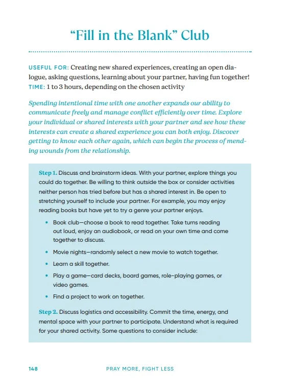 Navigate difficult conversations together, communicate with kindness and respect, and establish a deeper connection through weekly scripture, prayers, and faith-based exercises.