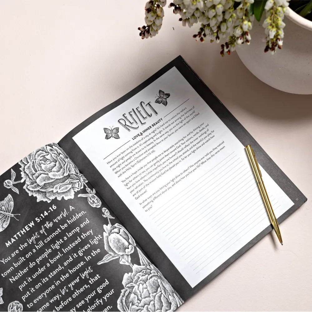 • Journal: Two full pages to journal your praise for God, your prayer requests, the things on your heart, and how you wish to be taught and guided, as well as a Bible verse about the power of prayer.