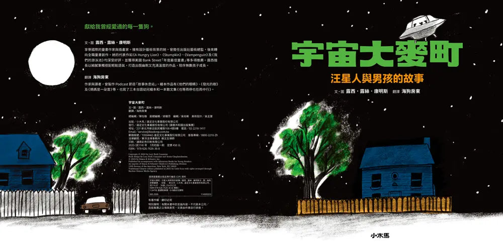 一個外星人,和他的兩個夥伴,從遙遠的星球來到地球執行探索任務。不料,他的夥伴在人類發現他們的時候,急急忙忙的離開,把他留在了原地…… 他,遇見了地球男孩史蒂芬。 史蒂芬收留了這位外星人。 他的外表長得像地球上的大麥町斑點狗,我們姑且稱呼他為「宇宙大麥町」,不過,請記住,他並不是地球狗。 因為史蒂芬一開始也以為…… 「放在寵物碗裡的早餐?噁──」(基於禮貌,宇宙大麥町還嘗了一口) 「約我散步竟然要牽繩?才不要!」 「丟球的遊戲?那是什麼?」 最讓宇宙大麥町驚訝的是── 「地球狗竟然都在戶外上廁所?!太尷尬了啦!」 宇宙大麥町成了史蒂芬的好朋友,他們一起吃著美味的培根早餐、一起散步、一起大笑、一起讀書…… 有一天,宇宙大麥町的夥伴終於回來地球接他…… 編輯小語 選書的時候,一眼就被封面那隻優雅又泰然的大麥町給吸引,內容更是奇妙又溫馨。(雖然編輯是貓派。) 市面上貓貓狗狗的繪本何其多,這一本以虛構的跨星際友誼,詮釋了人類和狗狗的關係。家有毛孩的人常會說:「他就以為他是人啊!」或是「她是我們最小的妹妹。」這本繪本就是把這樣的情感轉換成一段外星科幻故事。儘管作者露西的畫風簡潔隨興,但仍能發現當中的一些溫暖細節,例如我們可以看到男孩曾經養過狗……其實不論是喵星人、汪星人,還是其他毛孩,每一個生命都是獨一無二的個體,當你們相遇、相伴,無論他來自哪裡,都是彼此最珍貴的朋友、家人。本書特色 ●溫柔幽默的劇情:將毛孩描繪成外星生物,以他們的視角,呈現人與毛孩相遇和彼此認識、磨合、陪伴的過程,十分貼近家有毛孩的讀者心理。 ●可延伸議題:藉由跨種族的友情故事,可延伸我們如何看待不同文化的刻板印象,並用開放的心態,討論差異與接納的議題,寓教於樂。 ●既科幻又童趣的畫風:露西以自由奔放的鉛筆線條與單純搶眼的特別色,勾勒出既有科幻感,又富童趣的角色形象,十分吸引兒童的目光。 ●入選美國 CCBC Choices 2024、Bank Street年度最佳童書、Kansas NEA閱讀圈推薦,備受專業閱讀推廣機構青睞。 7歲以下親子共讀,7歲以上自行閱讀,無注音 符合課綱重要議題:生命教育、多元文化教育