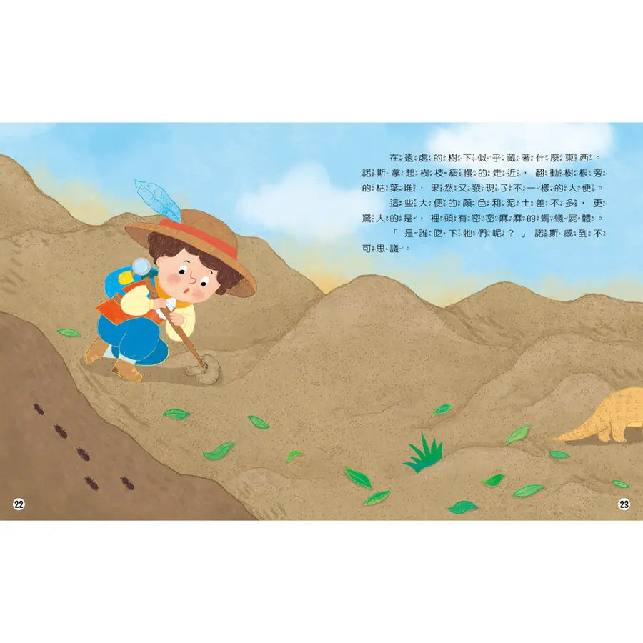 透過這個故事,孩子將在這場探險中學習不同動物的排泄特徵。理解食物如何經過消化後轉變成不同形態的排泄物,也能發現便便在生態系統中的重要性,而不是單純的「髒東西」。