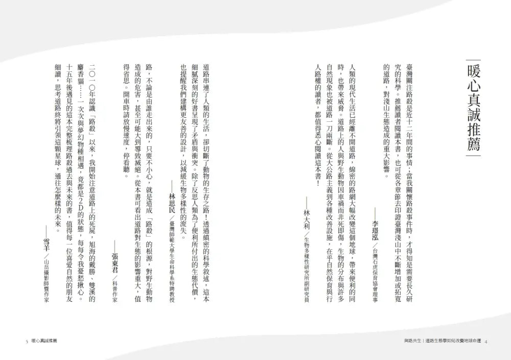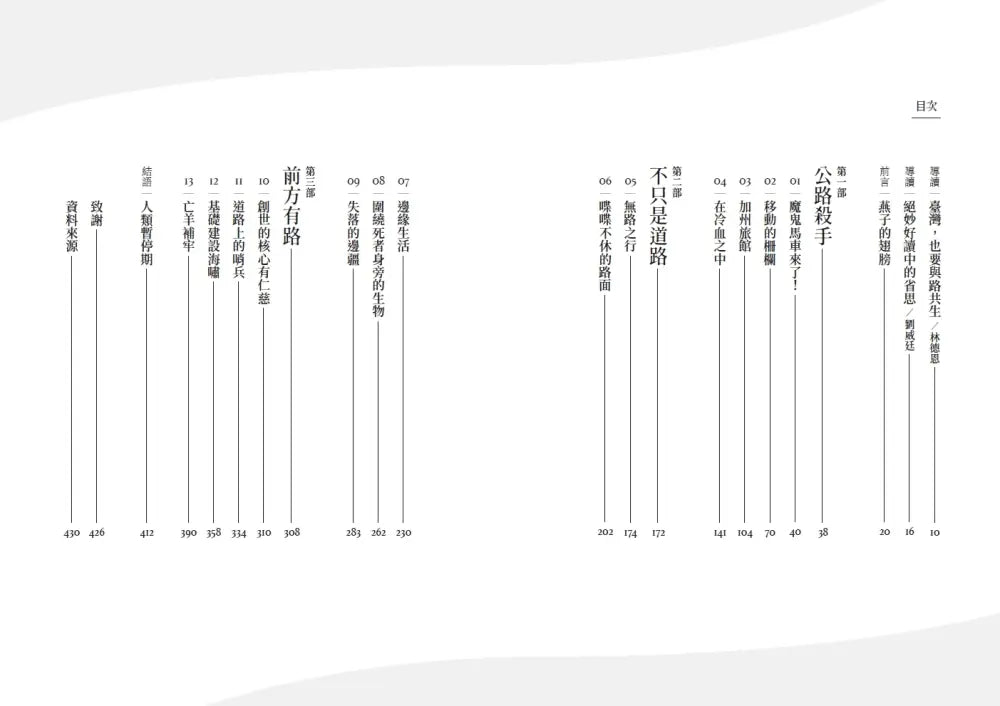 道路對動物、對人類本身,具有長遠而廣大的影響,已成為一種獨特的生態系統。長年從事環境報導的得獎記者戈德法布,透過本書介紹道路生態如何成為一門學科,以諸多鮮明的實例,帶領讀者切身感受道路設計對人類及地球生態的影響,以及世界各地的科學家、環保人士、一般公民,如何起而面對並處理這個新興議題。